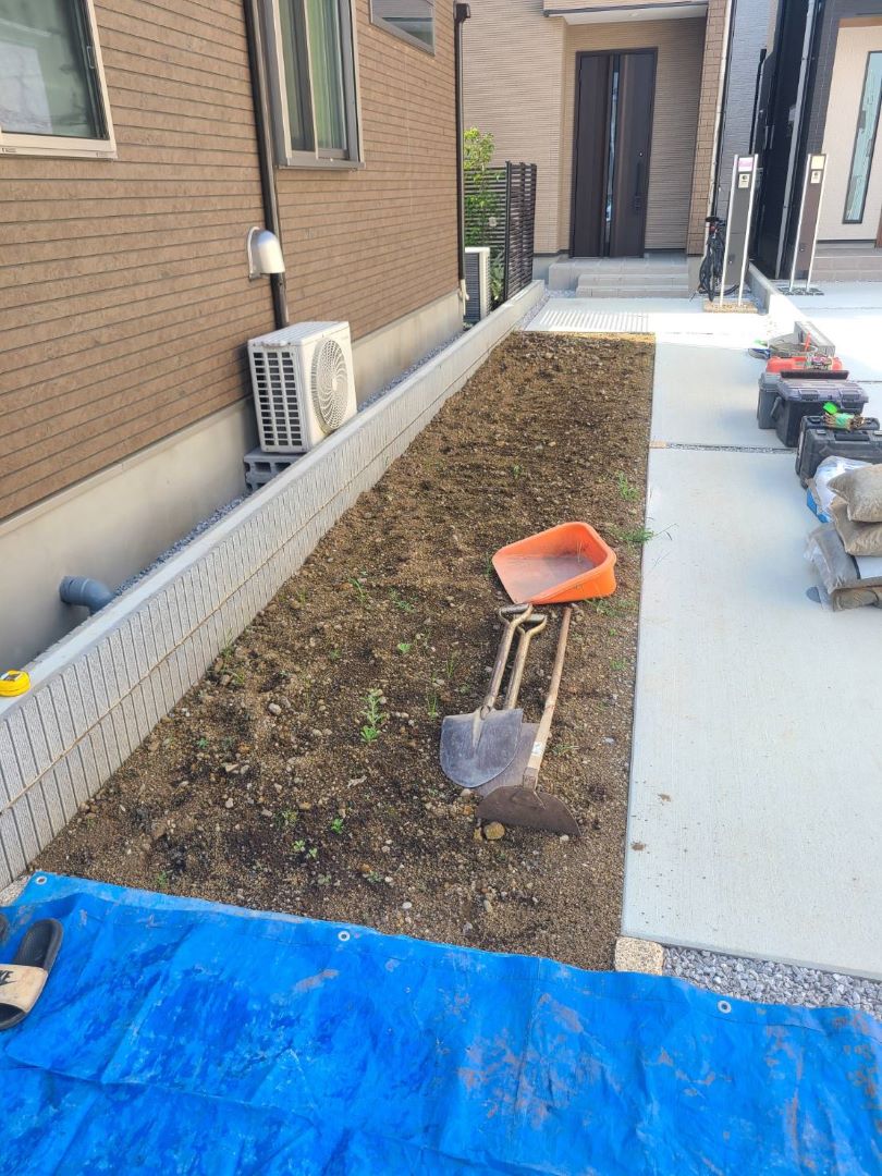 家の引き渡し後、駐車場の一部が土のままだったため、土間コンクリートのご依頼をいただきました。